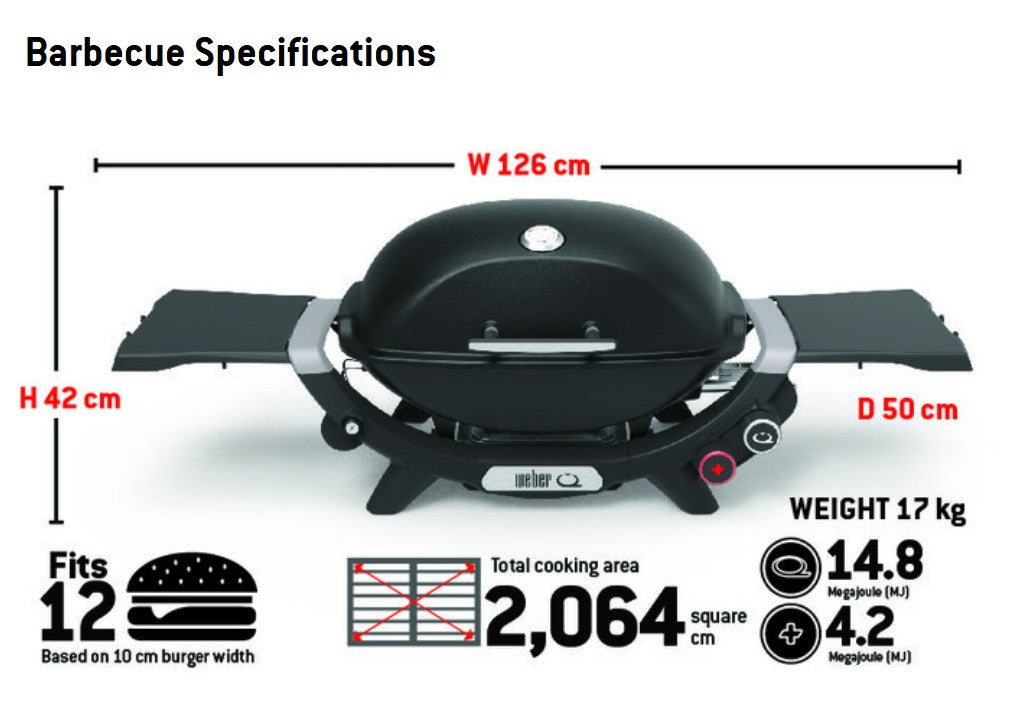 The Weber Q+ Premium (Q2800N+) 2 burner gas barbecue is big enough for every day, but still compact enough to take down to the park for a BBQ with friends.